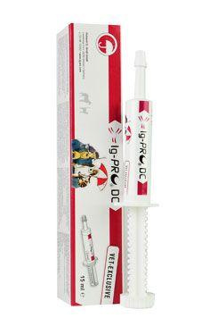 IG-PRO DC pasta 15ml pomáhá pasivně překrýt imunitní okna štěňat a koťat po porodu a ve věku 6-7 týdnu, pomáhá mláďata proti známým průjmovým onemocněním (parvovirus, coronavirus, rotavirus, Escherichia coli, Salmonella typhimurium, Salmonella dublin, Clostridie Typ A, C). U dospělých jedinců napomáhá stimulací imunity již na úrovni střevní sliznice při výskytu průjmového onemocnění.