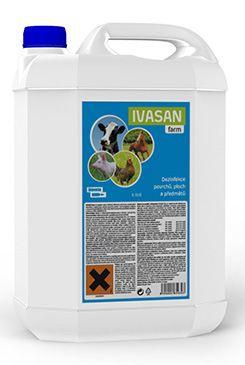 IVASAN Farm je kapalný vodou ředitelný přípravek určený pro profesionální dezinfekci a hygienickou sanitaci povrchů, prostor i technologických zařízení v chovech hospodářských zvířat a dezinfekci dopravních prostředků sloužících k převozu zvířat a skladišť krmiv.