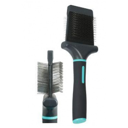 Pružný oboustranný rozčesávací kartáč pro psy na všechny typy srsti. Rozčesává, odstraňuje uvolněné chlupy a vyhlazuje srst.