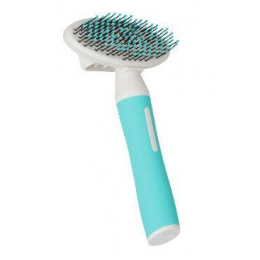 Jemný vysouvací rozčesávací kartáč pro štěňata na středně dlouhou a dlouhou srst. Rozčesává, odstraňuje vypadané chlupy a vyhlazuje srst.