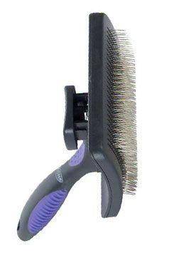 BUSTER samočisticí slicker - Slicker Brush je jemný a účinný víceúčelový pečující nástroj pro odmaštění a odstranění nechtěných vypadávajících chloupků - Zasouvací kolíky vám ušetří drahocenný čas na čištění - Když je podložka plná, uvolněte chloupky stisknutím tlačítka zadní strana vložky - Pro dlouhé/silné/dvojité pláště