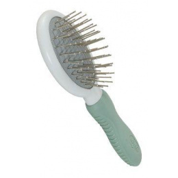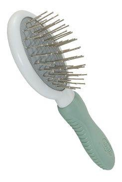 Kartáč se vzduchovým polštářem pro králíky a morčata: Pro citlivá místa, ideální pro hluboké rozčesání srsti. Díky nerezovým čepům umožňuje hluboké rozčesání vlasů. Odstraňuje odumřelé nebo zacuchané vlasy, stejně jako lupy nebo zachycené nečistoty. Tento kartáč na rozčesávání je vhodný pro citlivé oblasti, jako je obličej a tlapky.