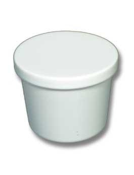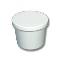 Lékárenský plastový kelímek s víčkem, o objemu 30 ml, vyrobený ze zdravotně nezávadných vstřikovaných plastů, určený zejména pro farmaceutický průmysl.