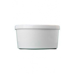 Lékárenský plastový kelímek s víčkem, o objemu 500 ml, vyrobený ze zdravotně nezávadných vstřikovaných plastů, určený zejména pro farmaceutický průmysl.