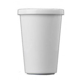 Lékárenský plastový kelímek s víčkem, o objemu 50 ml, vyrobený ze zdravotně nezávadných vstřikovaných plastů, určený zejména pro farmaceutický průmysl.