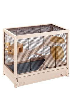 HAMSTERVILLE je klec pro křečky a malé myši, vyrobená z drátěné sítě a robustního dřeva. Toto praktické a pohodlné stanoviště pro malé hlodavce je vhodné i pro malé myši a představuje velký design i díky víceúrovňové struktuře. Díky různým policím a vnitřním podlahám bude mít váš malý kamarád možnost cvičit a udržovat se ve velmi dobré kondici; Přiložené dřevěné žebříky spojují různé sektory klece a umožňují tak vašemu mazlíčkovi snadný přístup. Dřevěné police jsou ošetřeny speciálním lakem, díky kterému jsou odolné vůči tekutinám, a proto se snadno udržují a dobře se čistí. Stanoviště je dodáváno s užitečným vysouvacím zásobníkem pro rychlé čištění a údržbu: plastové dno je skryto malými dřevěnými dvířky, která můžete zvednout pouhým odjištěním dřevěných zámků po stranách. Uvnitř je Hamsterville plně vybaven, aby vašemu hlodavci nabídl veškerý komfort, který potřebují: najdete zde některé nezbytné doplňky jako je pohodlný dřevěný domeček na spaní, miska na jídlo, kolečko a napáječka.