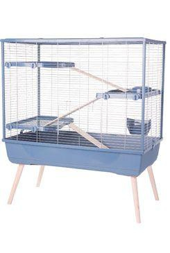 Výbava klece: 3 plastová patra, miska 150ml, jesličky na seno a 3 dřevěné schůdky