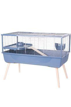 Výbava klece: 1 plastové patro, miska 150ml, jesličky na seno a 1 dřevěné schůdky