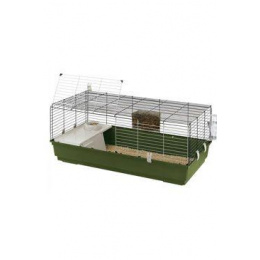 Ideální pro králíky a morčata, Rabbit 120 má sytě barevné plastové dno, na kterém je umístěna kovová síťka. Síť je opatřena speciální antikorozní barvou. Přední část je rozdělena na dvě přihrádky, které lze pro snadnější přístup zcela zvednout. To také usnadňuje každodenní čištění. Pro hlubší čištění jednoduše sejměte síťku ze dna vyháknutím zaklapávacích klapek na stranách, navržených pro extra bezpečnost.