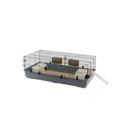 RABBIT 140 je velmi prostorná klec, ideální pro ubytování jednoho nebo více králíků. Dodává se s příslušenstvím, včetně dvou plastových podavačů na seno, dvou lahví na pití a dvou misek na jídlo. K dispozici jsou dvě malé králíkárny, nezbytné pro chvíle relaxace a vybavené stupňovitou konstrukcí, která umožní vašim králíkům snadno vstoupit. Dva domečky můžete umístit, kamkoli chcete, uvnitř boudy. Nakonec je tu plastový žebřík, který může váš králík použít, aby se dostal z boudy a mohl se volně potulovat po vašem domě.