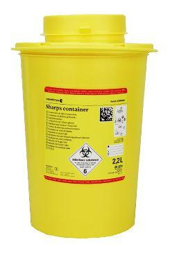 Jednorázové kontejnery určené k bezpečné likvidaci medicínského odpadu, jako jsou použité jehly, skalpely atd.