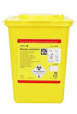 Jednorázové kontejnery určené k bezpečné likvidaci medicínského odpadu, jako jsou použité jehly, skalpely atd.
