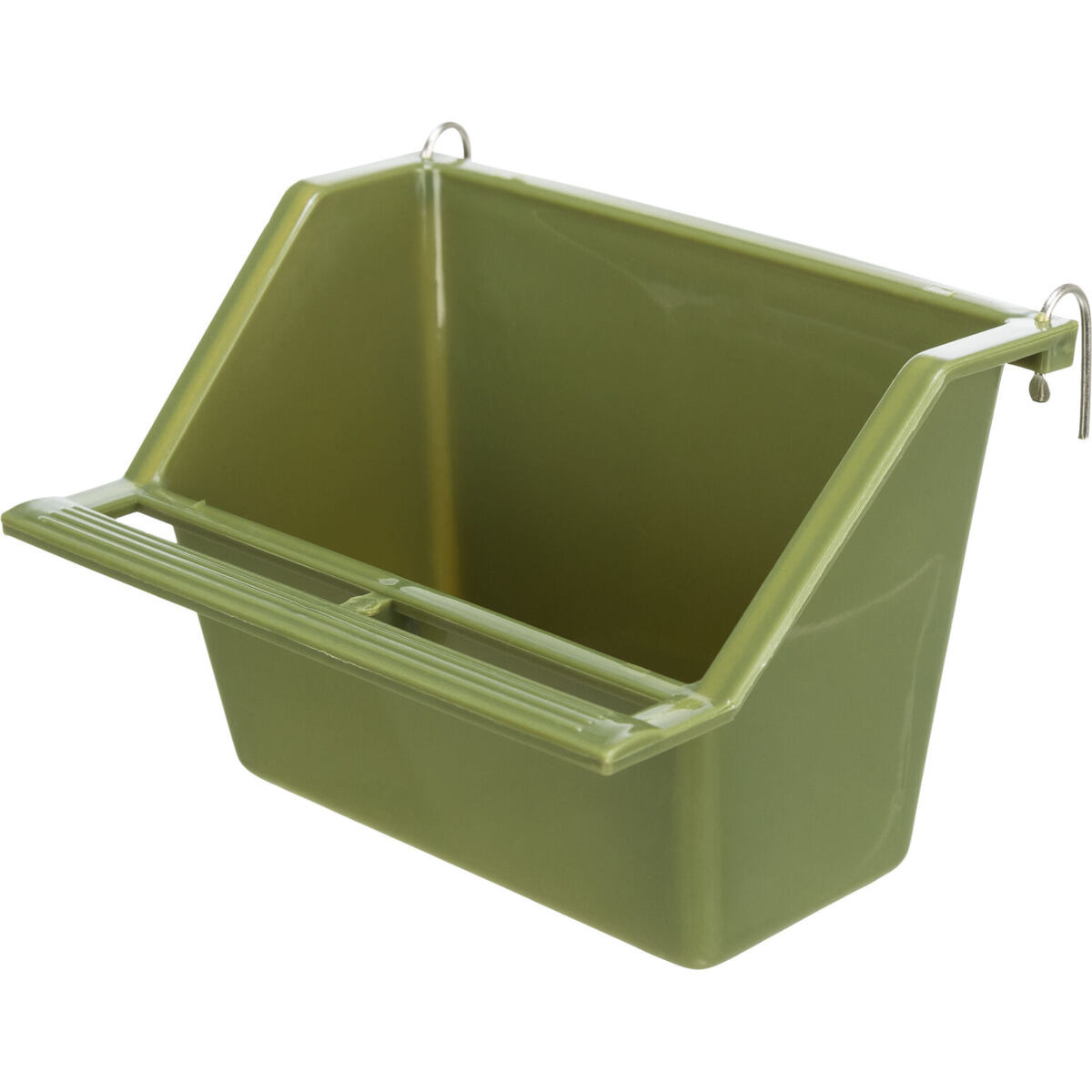 Závěsné plastové krmítko do klece je opatřeno bidýlkem, je vyrobeno ve třech přírodních barvách. Rozměr: 9 x 7 x 7,5cm cm