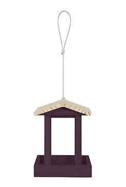 Závěsné krmítko na semena (650g) z certifikovaného borovicového dřeva a kovovým lankem pro větší odolnost. Vrchní plnění přes otvíratelnou stříšku.