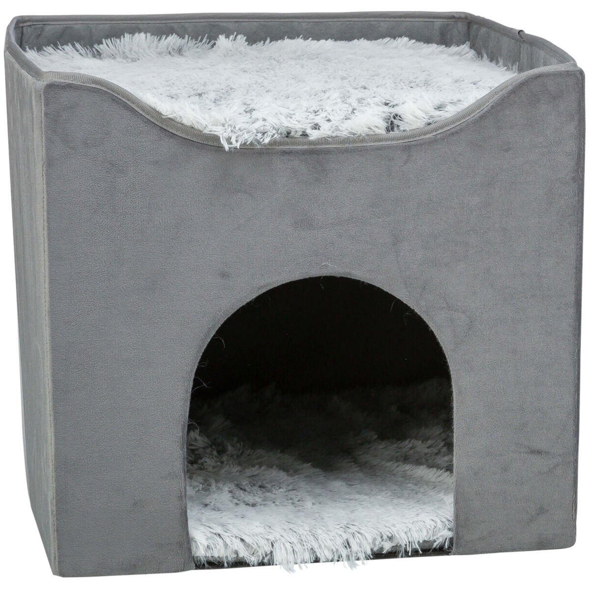 Kukaň HARVEY zamatová so strešným lôžkom, 38 x 38 x 38 cm, sivá/bieločierna