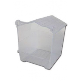 Plastová koupelna ve tvaru domečku vyrobená z velmi odolného čirého materiálu, vhodná pro malé a středně velké exoty a všechny chovné klece.