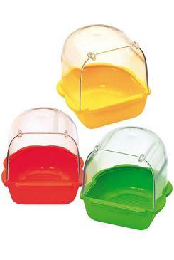 Koupelna je jednoduchá a přitom velice praktická, je určena zejména pro malé papoušky a ptáky, jakými jsou např. andulky, korely, zebřičky apod.. Koupání je pro papoušky chované doma velmi důležité, díky kvalitní koupeli se zregenuje peří a získá ten správný lesk. Koupelnu lze umístit do otvoru dvířek nebo ji můžete postavit na zem klece, ale to už záleži pouze na Vás.
