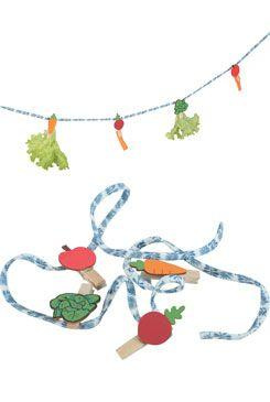 - 4 dřevěné kolíčky zdobené motivy zeleniny