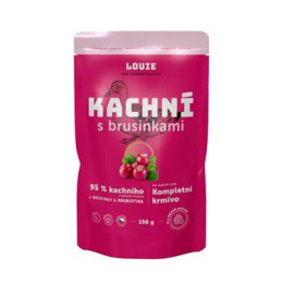Praktická kapsička plná kompletního krmiva. Obsahuje 95 % kachního masa v pevné složce a 5 % rostlinné složky, vitamínů a minerálů. Přidané brusinky napomáhají udržení zdravé močové soustavy a podporují peristaltiku střev. A po Louie zbyde jen vylízaná miska.
