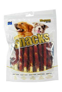 Měkká, přírodní masová pochoutka pro psy. Tyčka z hovězí kůže obtočená plátkem lahodného kuřecího masa. Slouží jako odměna při hře, výcviku nebo jako doplněk stravy při cestách. Složení: kuřecí maso, hovězí kůže, glycerin, sorbitol, cukr Deklarované jakostní znaky: hrubý protein 60% hrubá vláknina 0,2% hrubý tuk 3% hrubý pope
