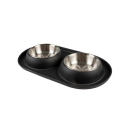 Miska DUVO+ Podložka s dvoma miskami nerez gumená čierna s priemerom 14,3 cm 2 x 420 ml