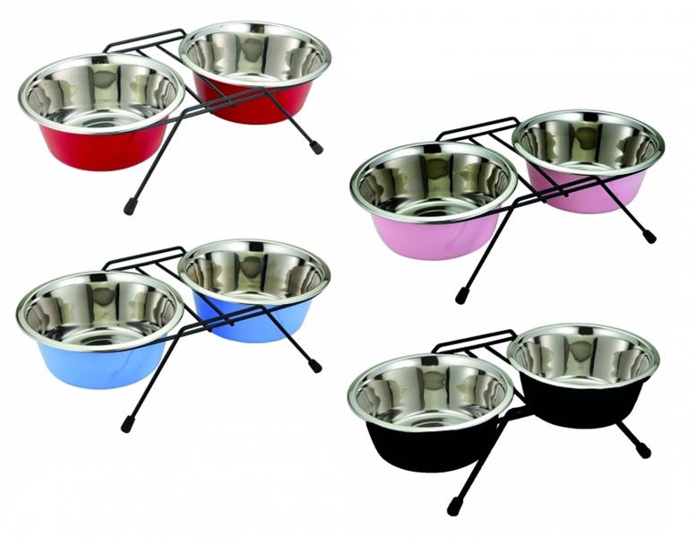 Miska DUVO+ Stojan s dvoma miskami nerez priemer 13 cm 2x0,47 S