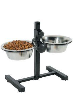 Výška stojanu maximálně 25 cm. Výškové umístění misek je nastavitelné.