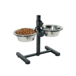 Stojan na misky v černé barvě. Dvě misky 0,7l jsou součástí balení.