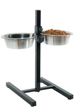 Výška stojanu maximálně 46 cm. Výškové umístění misek je nastavitelné.