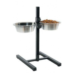 Stojan na misky v černé barvě. Dvě misky 1,5l jsou součástí balení.