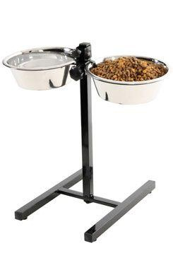 Výška stojanu maximálně 46 cm. Výškové umístění misek je nastavitelné.