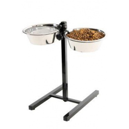 Stojan na misky v černé barvě. Dvě misky 2,5l jsou součástí balení.