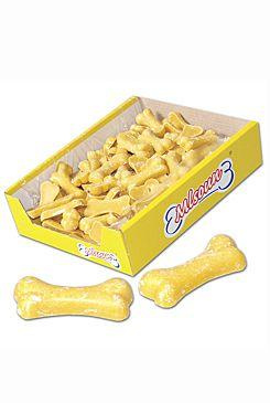 Doplňkové krmivo pro psy. Bonbony pro psy s mléčnou příchutí ve tvaru kostiček. Slouží jako pochoutka či odměna. Složení: obiloviny, cukr, tuky a oleje, sušená syrovátka, lecitin E-322, aroma, barvivo. Doporučené dávkování: 2 - 5 ks denně. Obsah: 100 ks/bal.