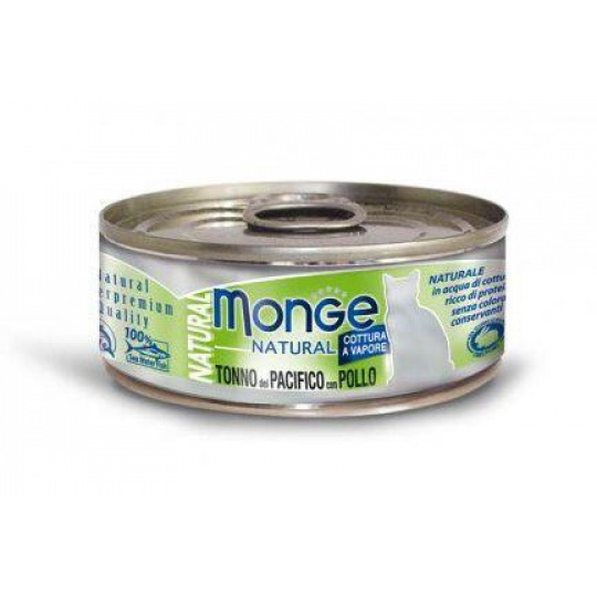 MONGE NATURAL kúsky tuniaka s kuracím mäsom pre mačky 80 g