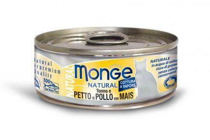 MONGE NATURAL tuniak s kuracími prsiami a kukuricou pre mačky 80 g