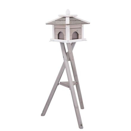 NATURA vonkajšie kŕmidlo na trojnožke, 46 × 35 × 46 cm/ 1,36 m, borovicové drevo, sivá/biela