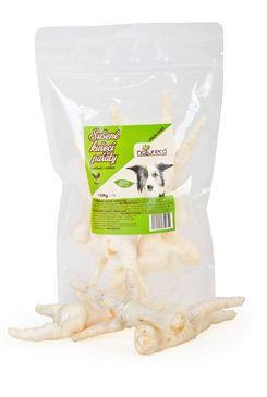 Nízkotučná dobrota v přírodním stavu z čistého kuřecího. Kuřecí pařáty jsou zdrojem minerálních látek. Obsahují kolagen, vápník, elastin a fosforu. Pro svůj nízky obsah tuku jsou