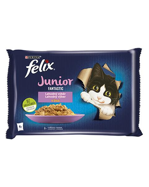 Nestlé FELIX Fantastic cat Multipack junior kura&losos želé kapsička 4x85 g
