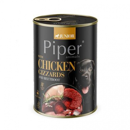 NEW PIPER JUNIOR s kuracími žalúdkami a červenou repou, konzerva pre šteniatka, 400 g