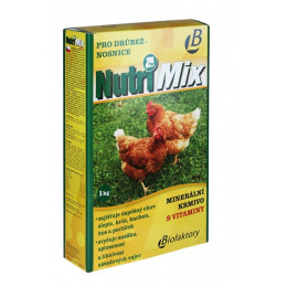 Minerální krmivo s vitaminy pro výkrm a odchov drůbeže. Vitamino-minerální směs NUTRI MIX je určena pro drobnochovatele a malochovy. Přidává se do krmné dávky drůbeže, kterou tvoří převážně obilné šroty, kuchyňské zbytky a další domácí krmiva. Obsahuje biologicky účinné látky – vitamíny, minerální látky a aminokyseliny. Tato směs umožňuje