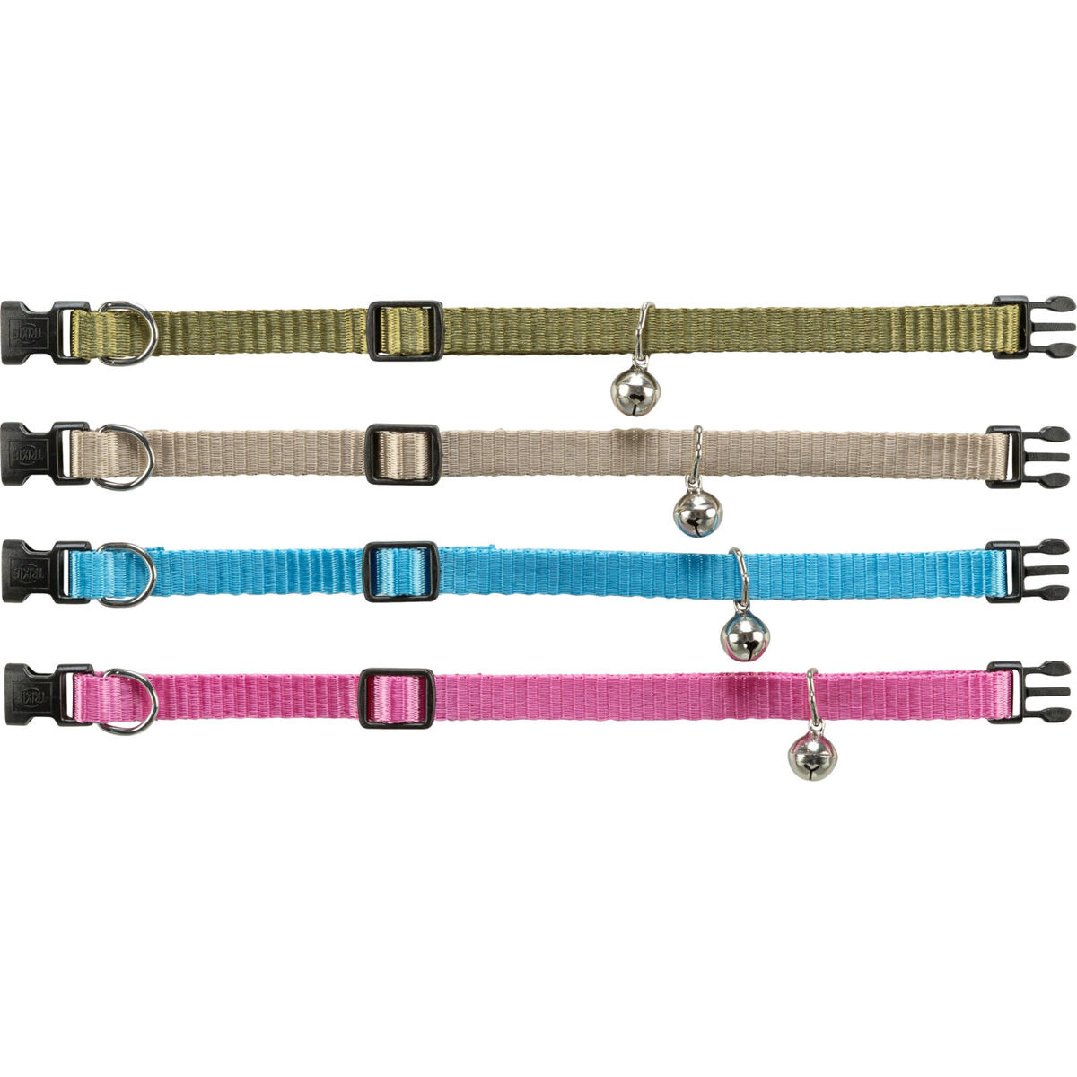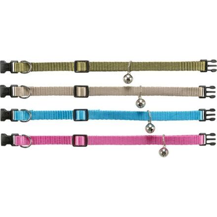 Nylonový nastaviteľný obojok pre mačku, s rolničkou, khaki/béžová/tyrkysová/ružová
