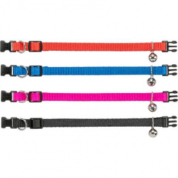 Nylonový nastaviteľný obojok pre mačku, s rolničkou, oranžová/modrá/malinová/čierna