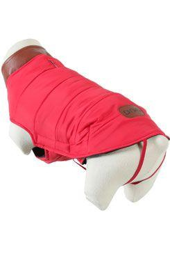 Nepromokavá prošívaná trendy bunda je velmi pohodlná. V oblasti krku a hrudníku je nastavitelné pružné zapínání na suchý zip. Límec a nášivka na zádech s nápisem DOG ze syntetické hnědé kůže. Obleček má intergrované otvory na vodítko a na nohy.