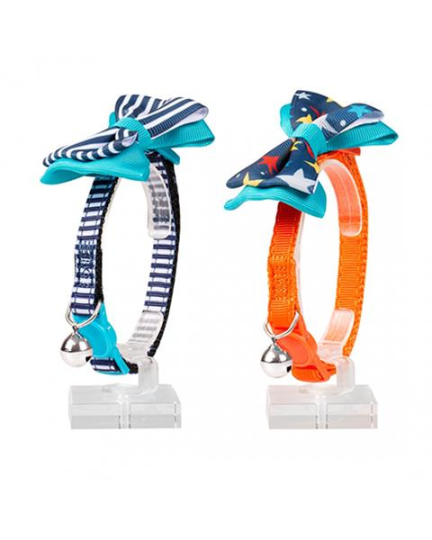 Obojok DUVO+ nylonový s mašľou a rolničkou pre mačku mix farieb 20-30cm/10mm
