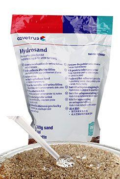 Použití: písek rozprostřete v čisté a prázdné toaletě a poté počkejte, až kočka toaletu použije. Moč, která zůstane na povrchu písku nebo v tácku, odeberte pipetou a přemístěte do zkumavky. Pro odběr jednoho vzorku moči je zapotřebí celý obsah jednoho sáčku. V případě potřeby použijte více než jeden sáček písku.
