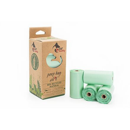 PetBuddy recyklované vrecká na psie exkrementy, 8 rolí / á 15 vreciek, zelená s potlačou