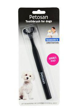Seznamte svého psa se zubním kartáčkem. Petosan dvouhlavý zubní kartáček vám umožní čistit jedním pohybem vnitřní a vnější plochy zubů současně.