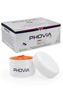 Před použitím systému Phovia ránu očistíme a je-li na silně osrstěné části těla, opatrně zkrátíme srst při jejím okraji. Těsně před použitím smícháme nosný gel a fluorescenční složkou, čímž vznikne jasně oranžová hmota. Tento oranžový gel naneseme na ošetřované místo ve vrstvě asi 2mm silné a ozáříme lampou Phovia. Doba jednoho osvitu je pro psy a kočky stanovena na 2 minuty. Při použití gel vyčerpá svou kapacitu a změní barvu na špinavě růžovou. Po aplikaci gel odstraníme gázou zvlhčenou fyziologickým roztokem. Použití systému Phovia zkracuje dobu léčení až na jednu polovinu očekávané doby.