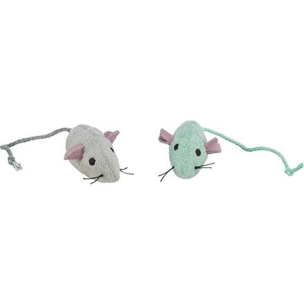 Plyšová myš s rolničkou, 5 cm (2 ks), sivá/zelená