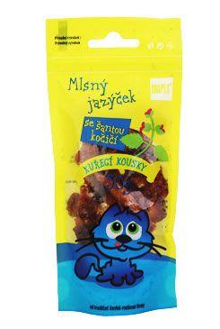 Lahodná a 100% přírodní pochoutka pro kočky všech plemen. Kuřecí kousky se šantou kočičí - je krájené čerstvé kuřecí maso, sušené teplým, čistým vzduchem. Do každého sáčku je přidána snítka šanty kočičí, pěstované ve Velharticích na Šumavě, sušené přírodním způsobem.